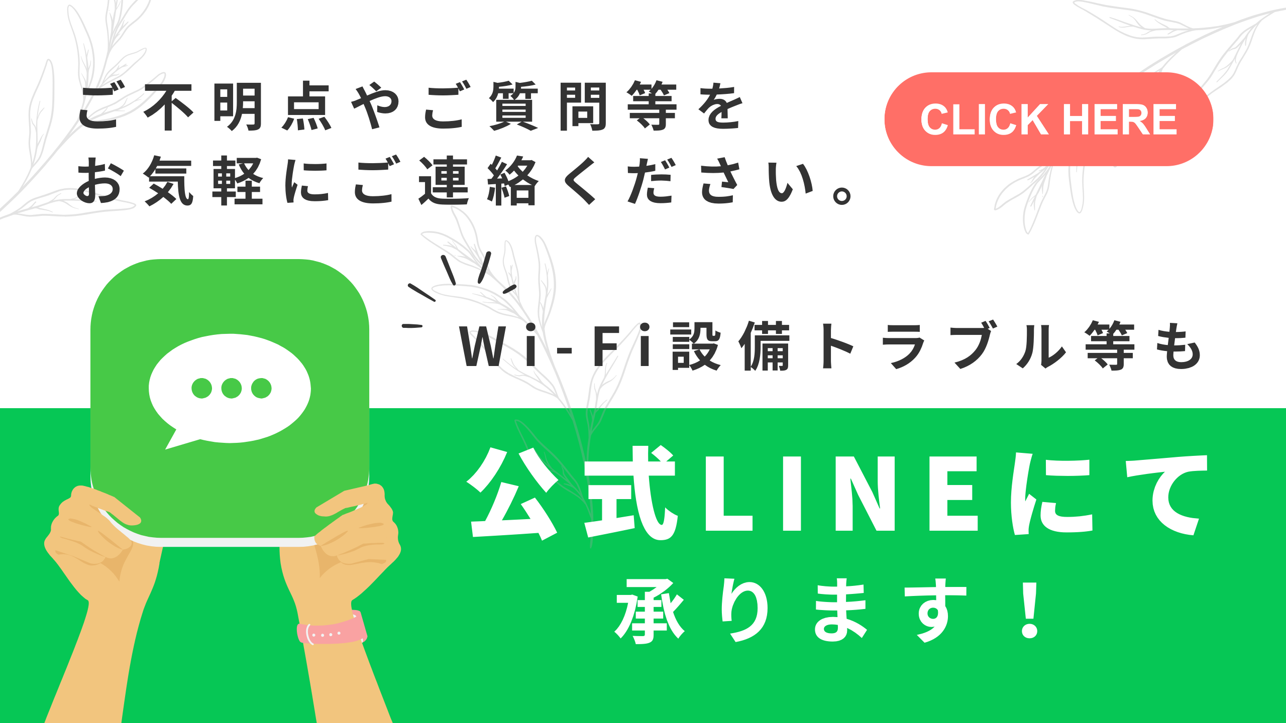 - Wi-Fi・空調・その他設備のトラブル時は、LINE問い合わせファームよりご連絡ください。